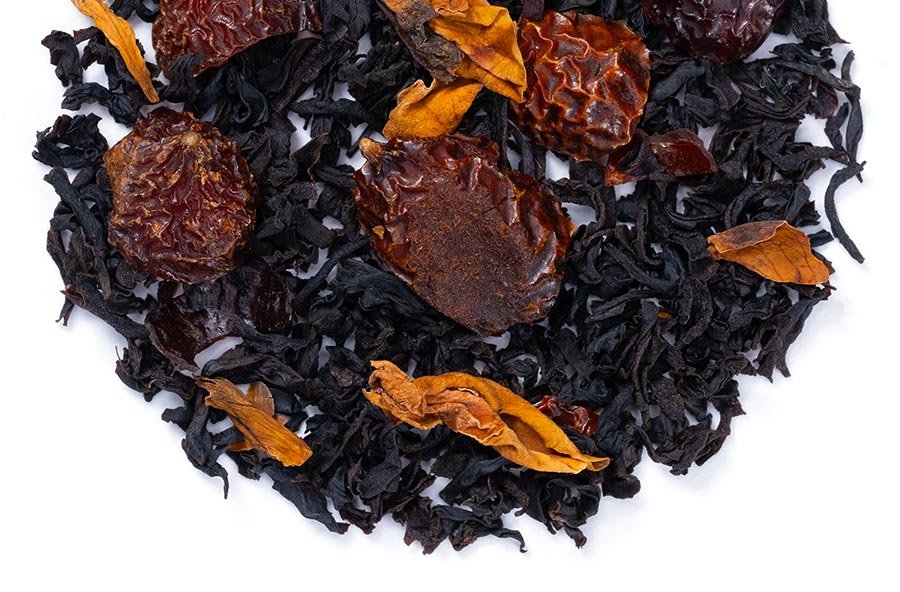 Ingredients: black tea, rose hips, natural wild cherry flavor, cherries, rose petals & natural blackberry flavor
