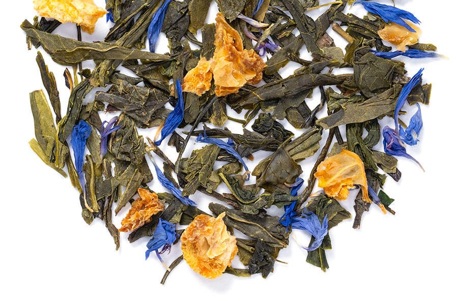 Ingredients: green tea, orange, natural bergamot flavor & blue cornflowers