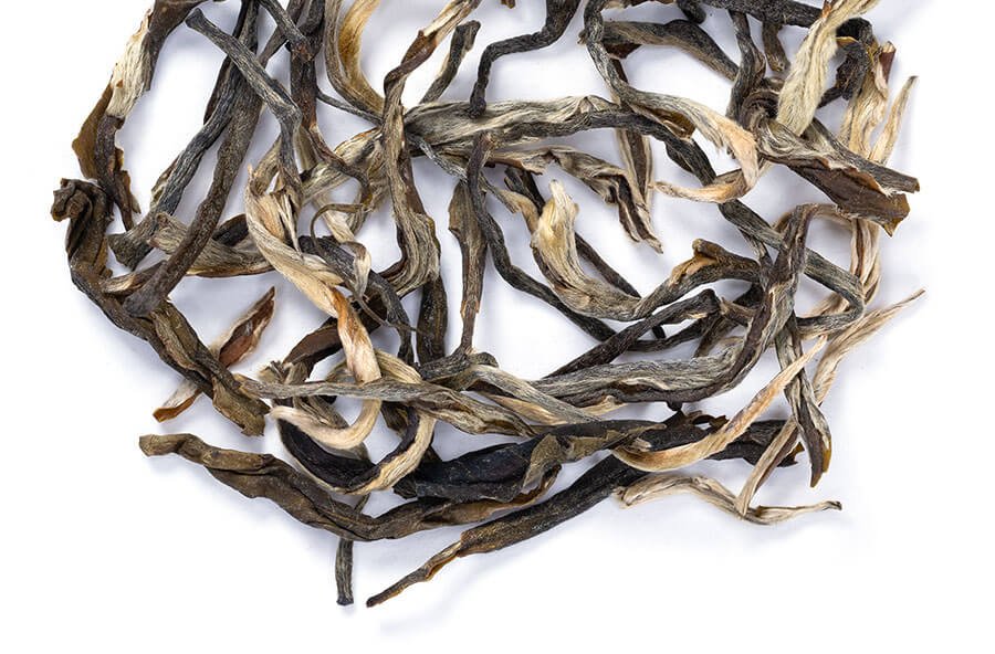 The large twisted ‘yellow tea’ leaves brew to a lovely golden yellow color. It has soft, airy notes and a dry, crisp, fruity character.