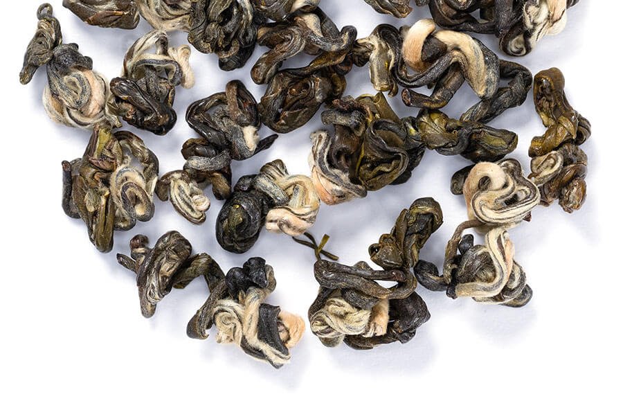 Jade Snail is a Chinese green tea made up of tightly rolled fuzzy buds that resemble spiral shells or the scroll of a violin. While steeping, they unfurl to deliver intricate notes of roasted nuts, soft smokiness, and a hop-like crispness. As it fades, a dry white grape character lingers. Our Jade Snail green tea is intriguingly delicate and bold.