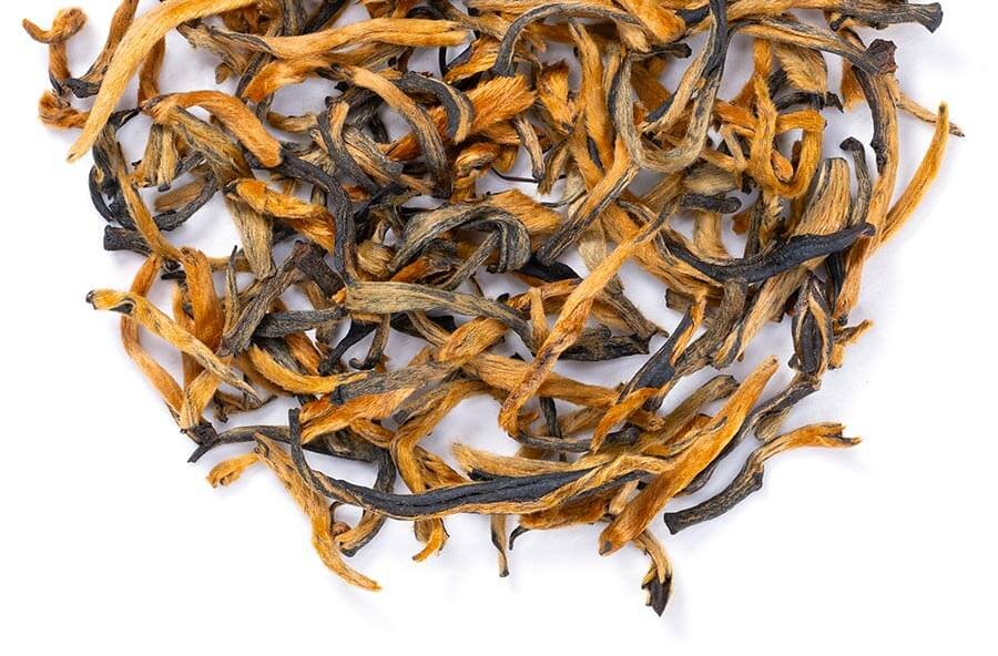 Yunnan Gold black tea (also known as Dian Hong) is easily identified by its abundance of soft golden tips, and savory cocoa and black pepper flavors. This artisan tea hails from the Yunnan province of China, the birthplace of tea itself. Our high-grade Yunnan Gold is milk chocolate creamy and sweet, with pleasant pepper notes. The flavor becomes earthier and more layered as it cools. Soft, rounded cup, silky and perfect. It is also a very forgiving tea and will not taste bitter when over-steeped. Allowed to take only one tea to a desert island, this “golden” Yunnan would be our clear choice.